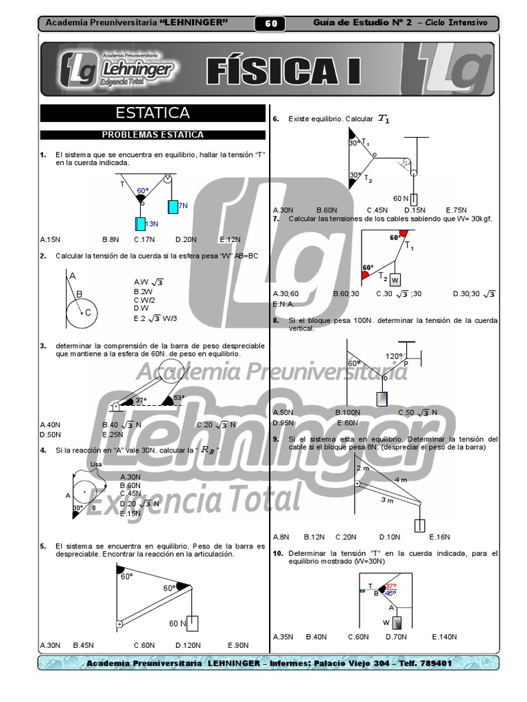 Si el sistema esta en equilibrio. Determinar la tensin del