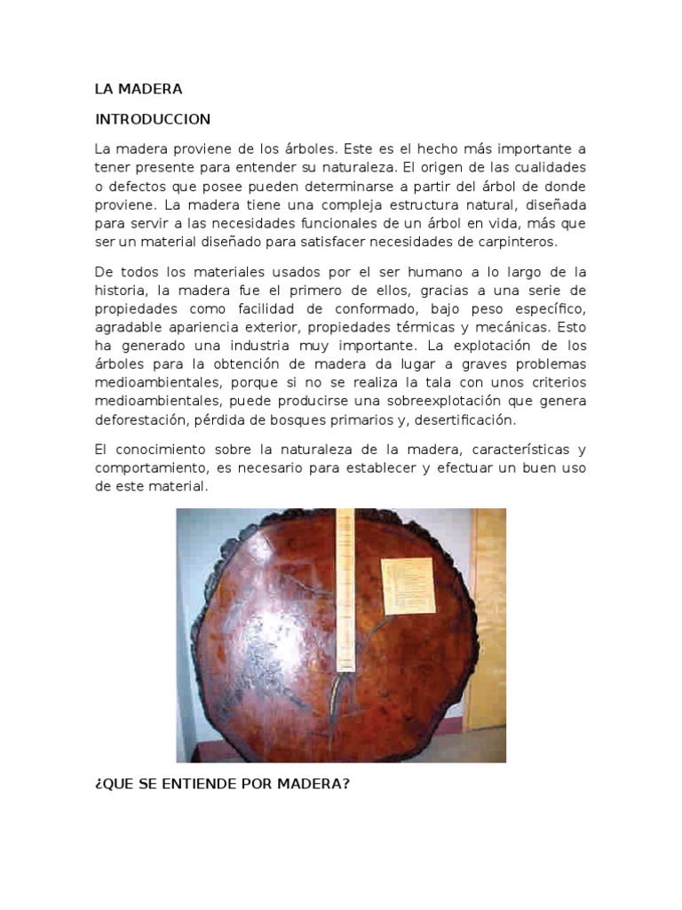 El conocimiento sobre la naturaleza de la madera, caractersticas y