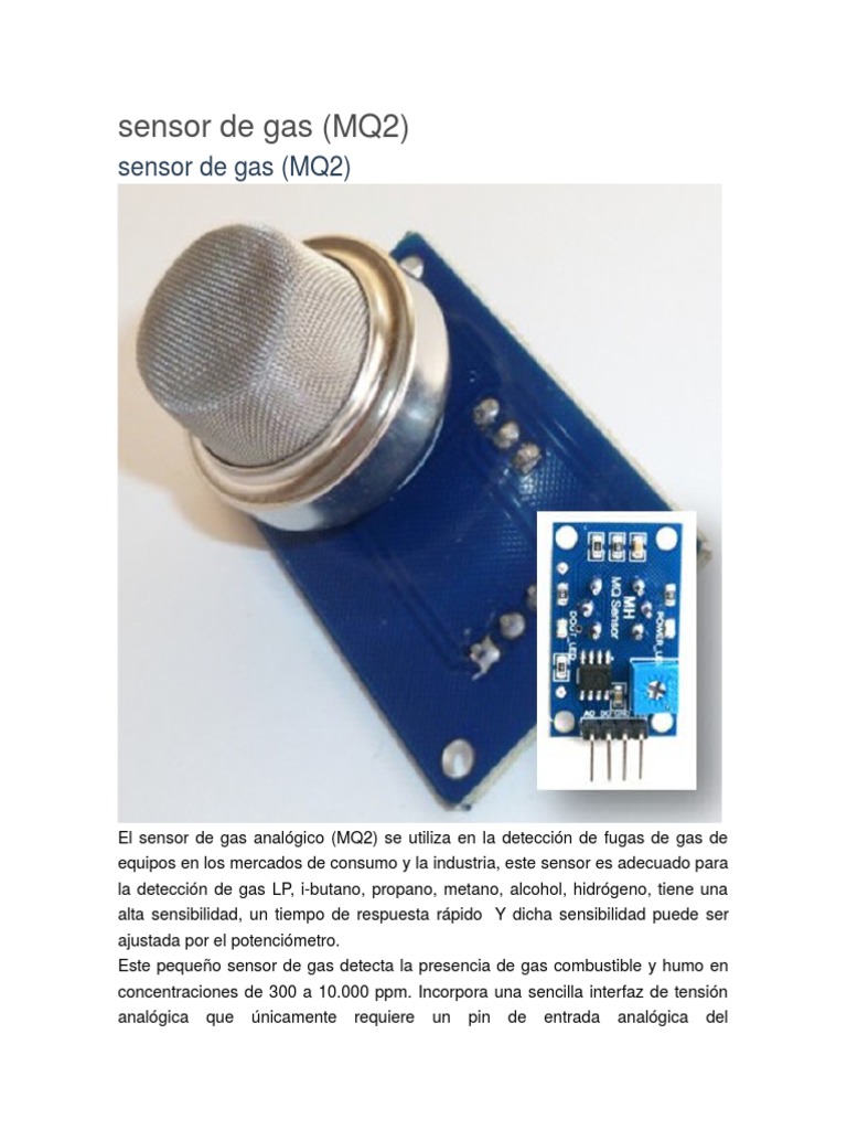 El sensor de gas analgico (MQ2) se utiliza en la deteccin de fugas de gas de