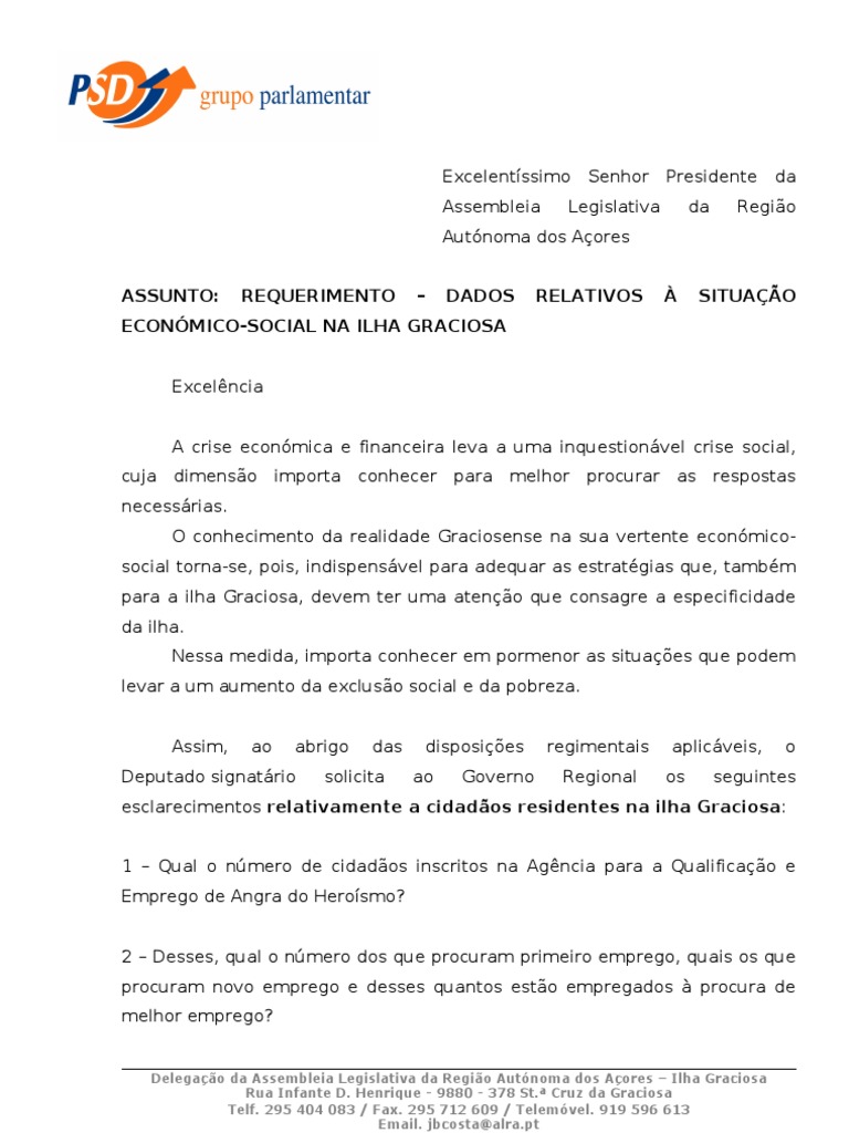 esclarecimentos relativamente a cidadãos residentes na ilha Graciosa: