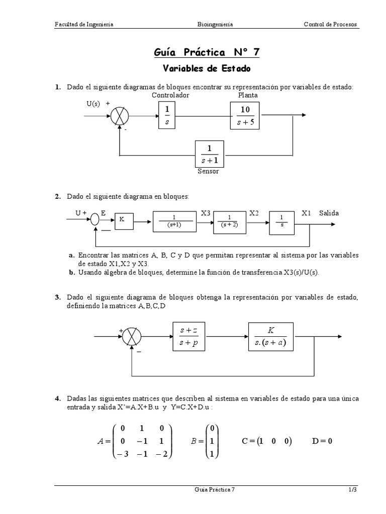 1. Dado el siguiente diagramas de bloques encontrar su representacin por variables de estado: