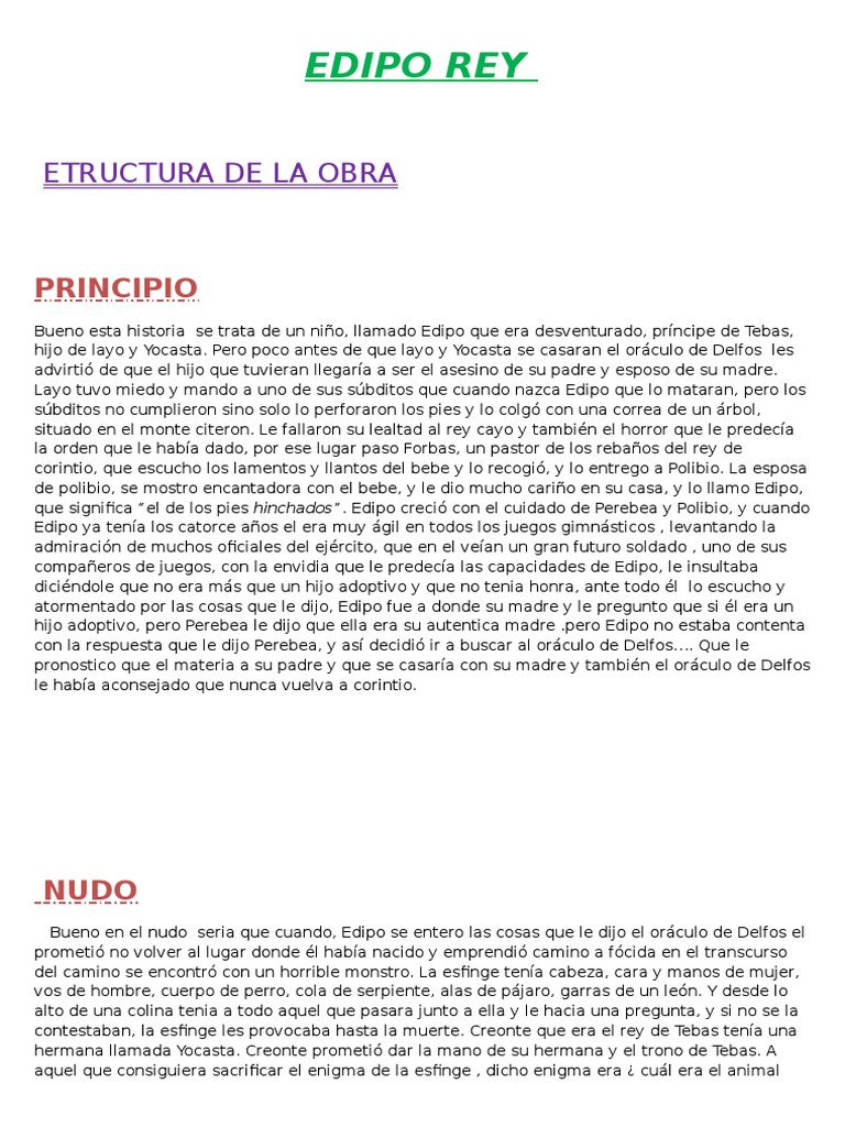 de layo, su padre y se haba casado con Yocasta que era su madre.