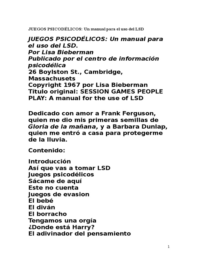 JUEGOS PSICODLICOS: Un manual para el uso del LSD