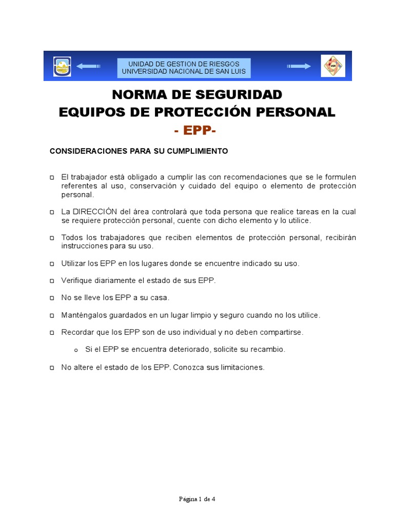 referentes al uso, conservacin y cuidado del equipo o elemento de proteccin