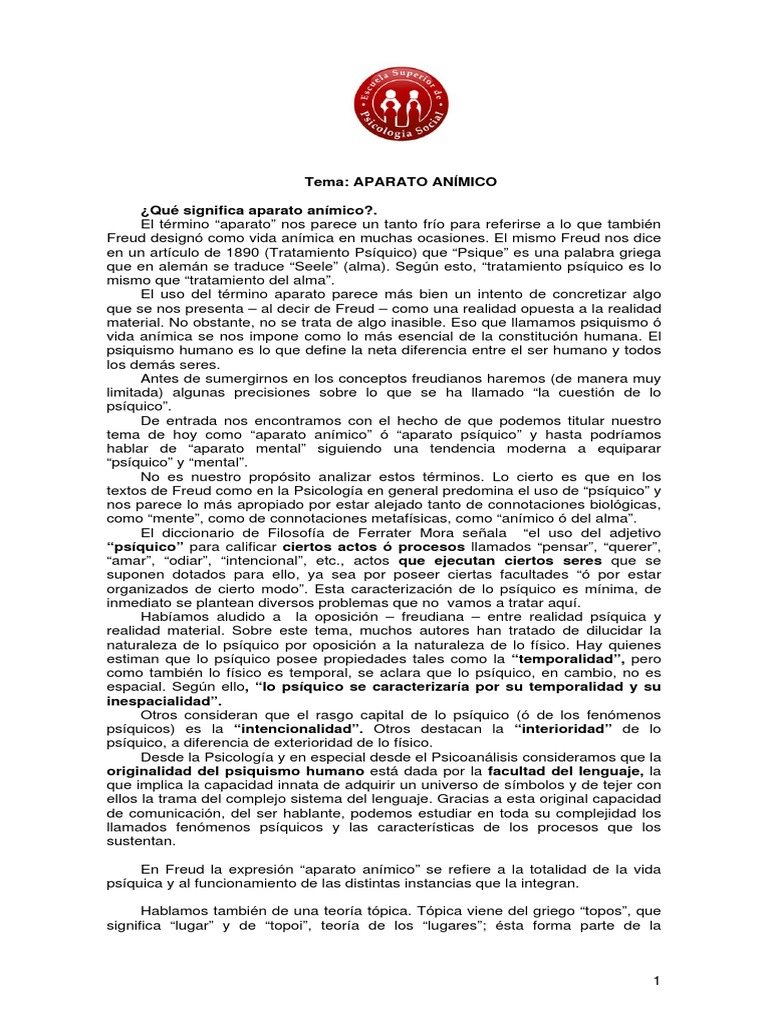 tema de hoy como aparato anmico aparato psquico y hasta podramos