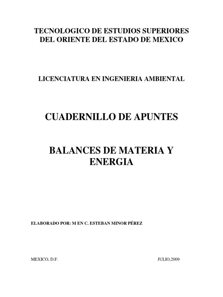 1.4 Importancia de los balances de materia y energa en Ingeniera Ambiental