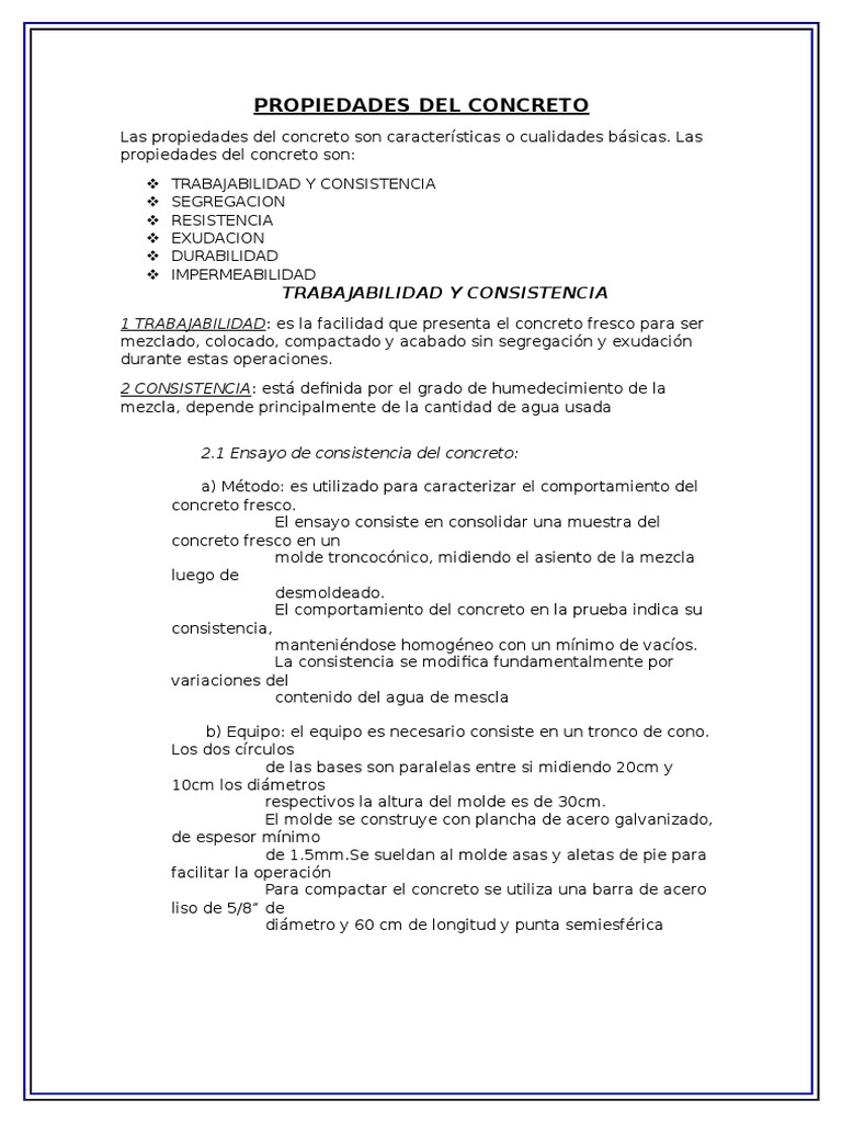 Las propiedades del concreto son caractersticas o cualidades bsicas. Las