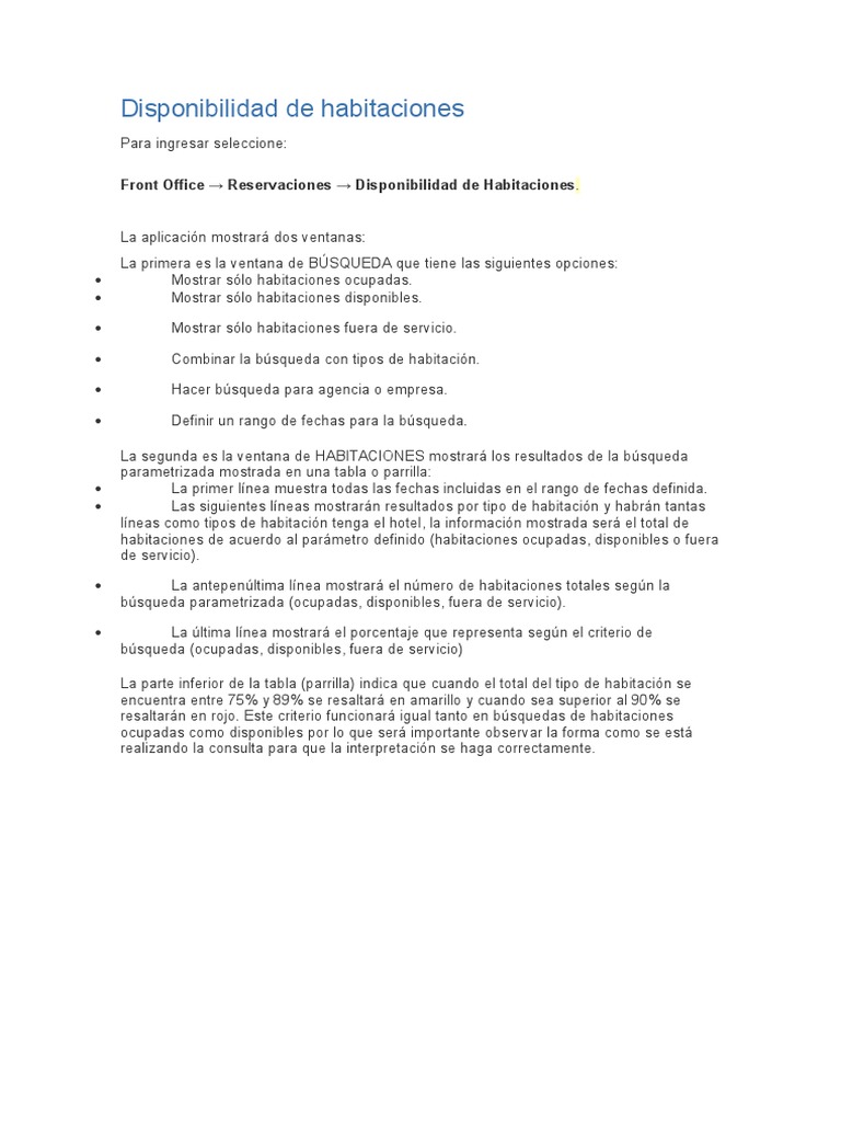 Front Office Reservaciones Disponibilidad de Habitaciones.