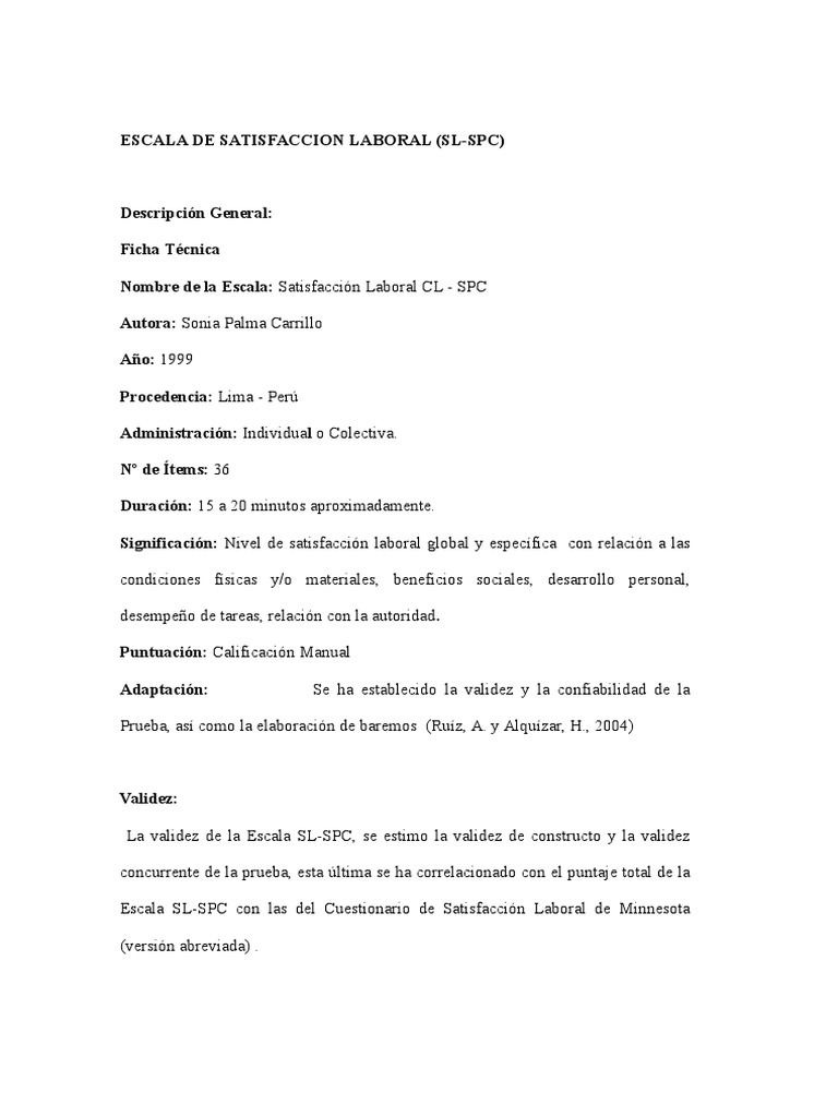 ESCALA DE SATISFACCION LABORAL (SL-SPC)