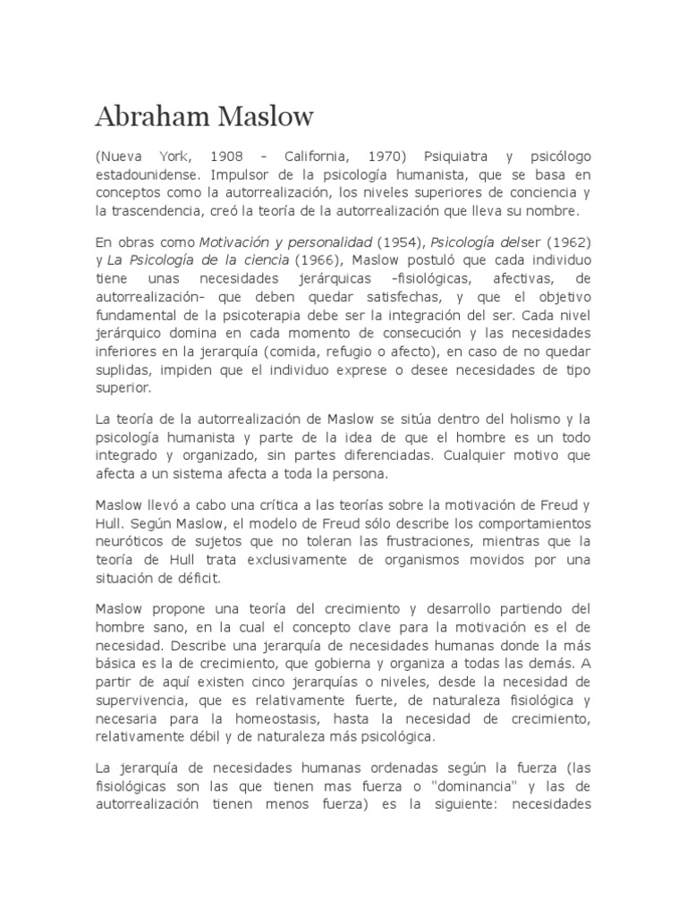 Hull. Segn Maslow, el modelo de Freud slo describe los comportamientos