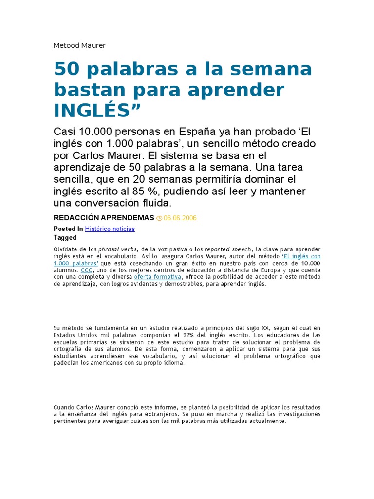 ingls est en el vocabulario. As lo asegura Carlos Maurer, autor del mtodo El ingls con