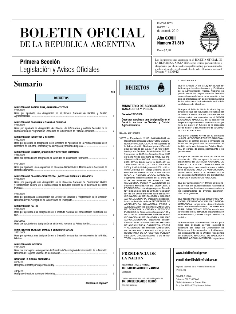 Martes 12 de enero de 2010 Primera Sección BOLETIN OFICIAL Nº 31.819 40