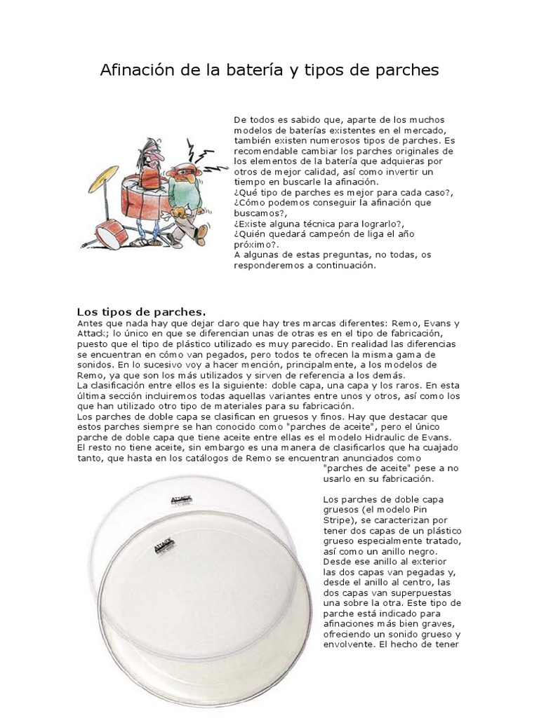 parches de la batera no podan ser menos y el tono en el que estn afinados vara.