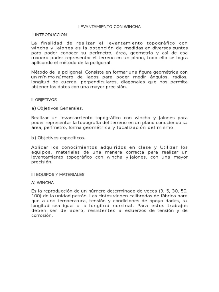 wincha y jalones es la obtencin de medidas en diversos puntos