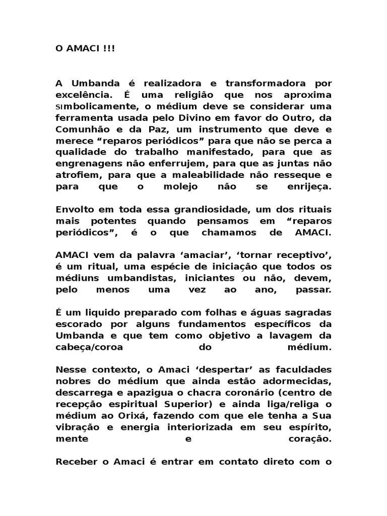 AMACI vem da palavra amaciar, tornar receptivo,