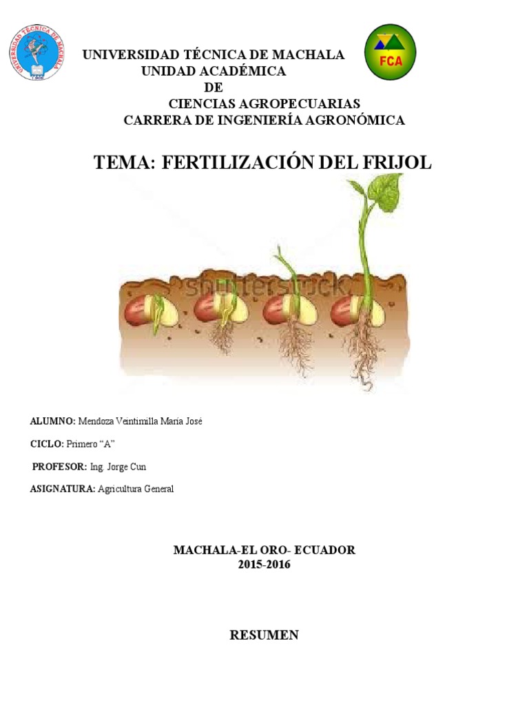 En el presente informe detallaremos la fertilizacin del frijol, ya que es un dato muy importante para el agricultor