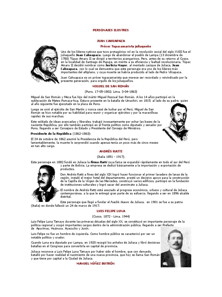 El nombre de Andrs Ratti est asociado al progreso econmico, urbano y cultural de Juliaca