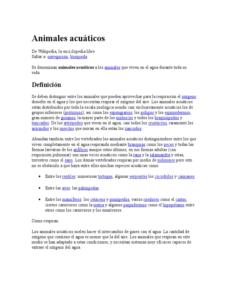 Aparte de los peces, moluscos etc, el trmino animales acuticos se puede aplicar a los