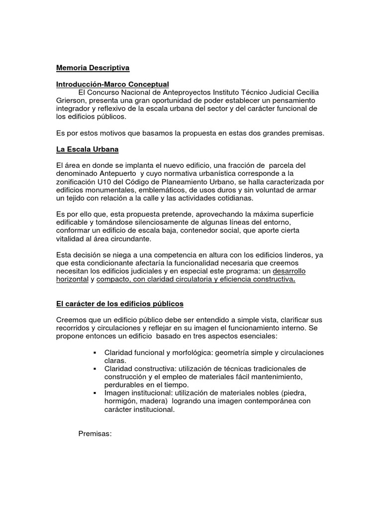 El Concurso Nacional de Anteproyectos Instituto Tcnico Judicial Cecilia