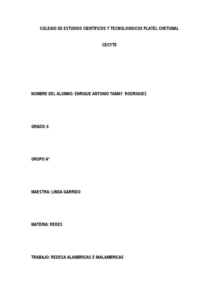 TRABAJO: REDESA ALAMBRICAS E INALAMBRICAS