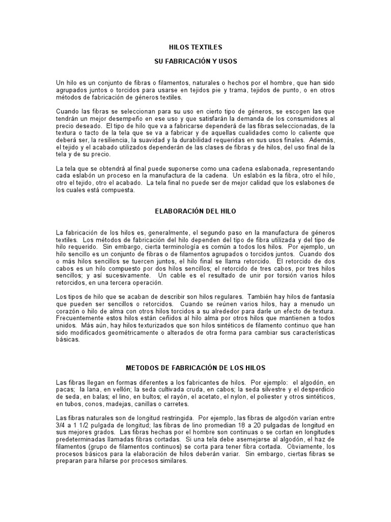 procesos bsicos para la elaboracin de hilos debern variar. Sin embargo, ciertas fibras se