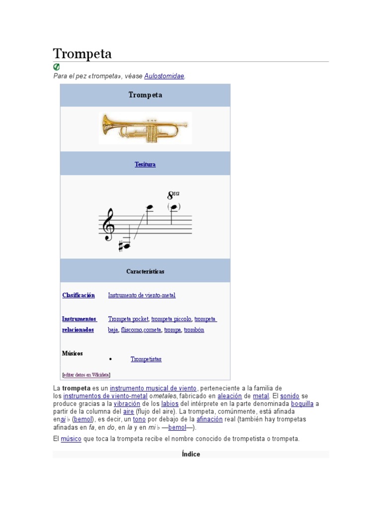 Volver arriba Los instrumentos: La trompeta. Archivado desde el original el 2001-0822. Consultado el 28 de noviembre de 2007.