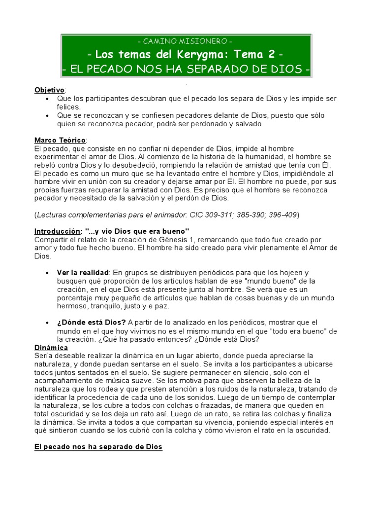 - Los temas del Kerygma: Tema 2 - EL PECADO NOS HA SEPARADO DE DIOS .