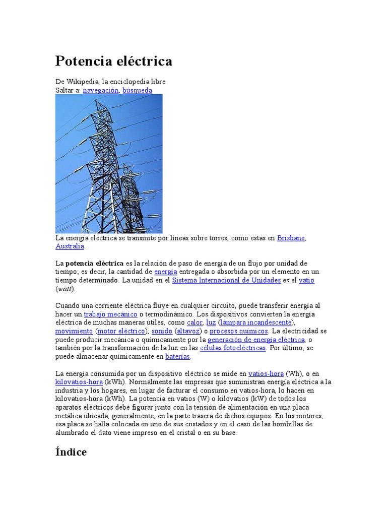 Es la potencia capaz de transformar la energa elctrica en trabajo. Los diferentes
