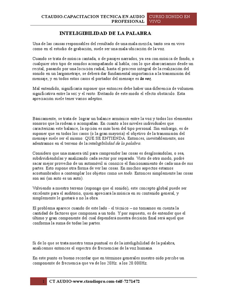 CAPACITACION TECNICA EN AUDIO CURSO SONIDO EN