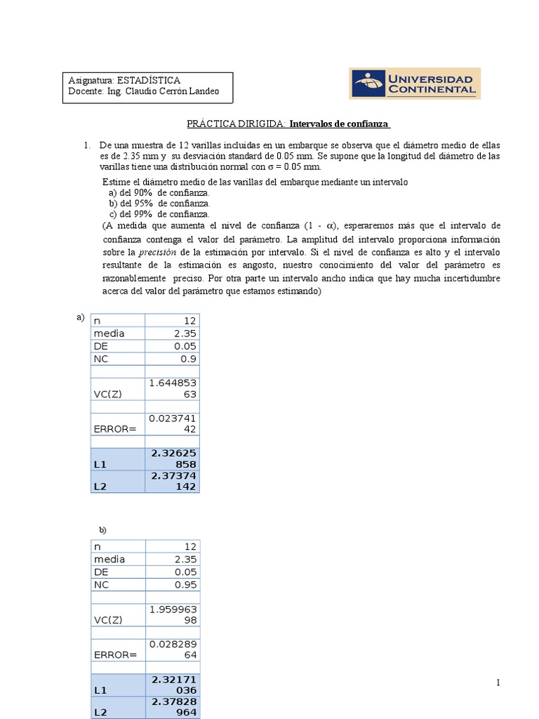 PRCTICA DIRIGIDA: Intervalos de confianza