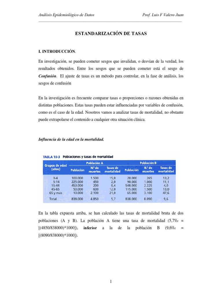 aplique el mtodo de estandarizacin directa con los datos recogidos en la
