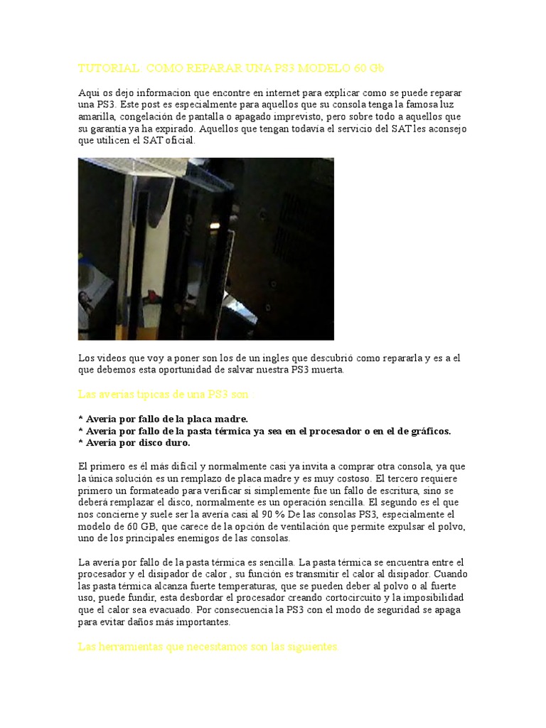 TUTORIAL: COMO REPARAR UNA PS3 MODELO 60 Gb