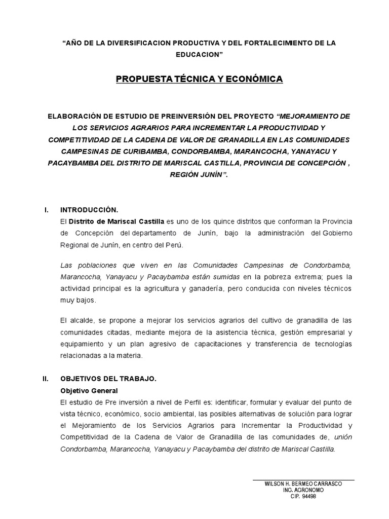 Estudio de pre inversin a nivel de Perfil Tcnico en original conteniendo la