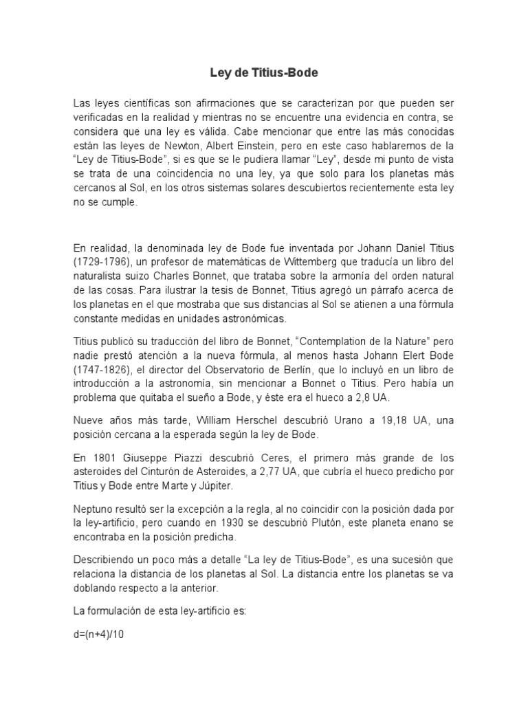 introduccin a la astronoma, sin mencionar a Bonnet o Titius. Pero haba un
