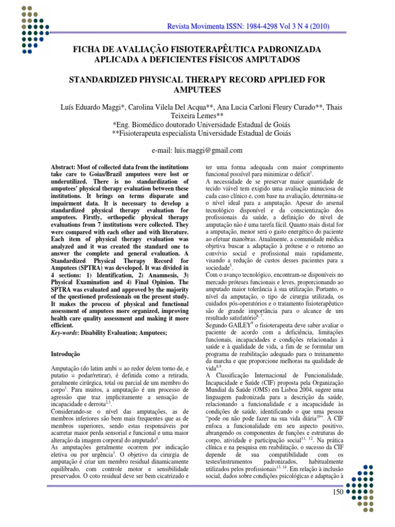 FICHA DE AVALIAO FISIOTERAPUTICA PADRONIZADA