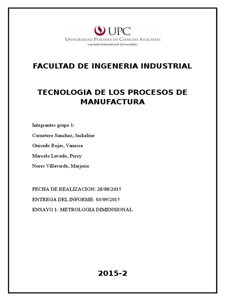 ENSAYO 1: METROLOGIA DIMENSIONAL