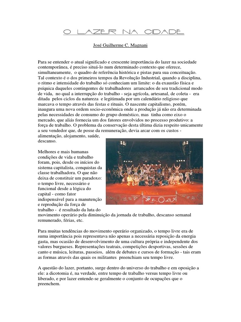 A questo do lazer, portanto, surge dentro do universo do trabalho e em oposio a