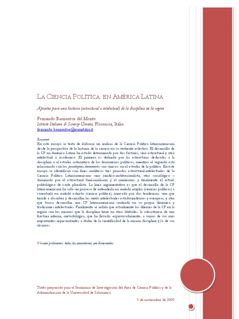 son notas dentro de lo que se puede considerar “sociología de la ciencia política” en AL.