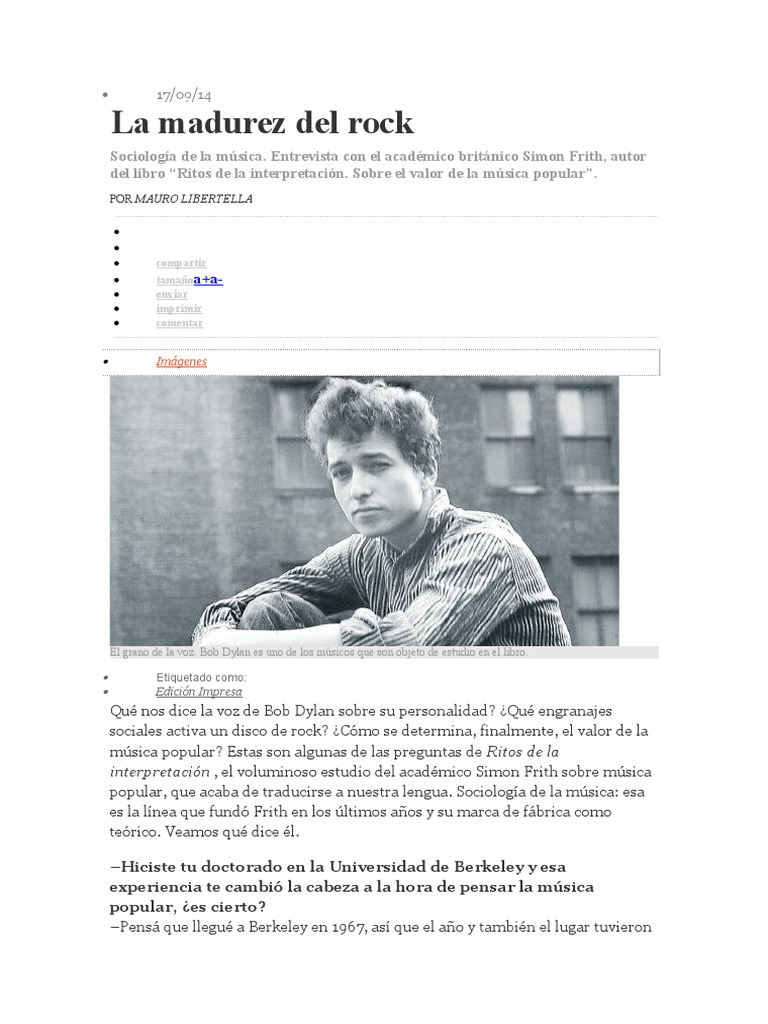 Sociologa de la msica. Entrevista con el acadmico britnico Simon Frith, autor