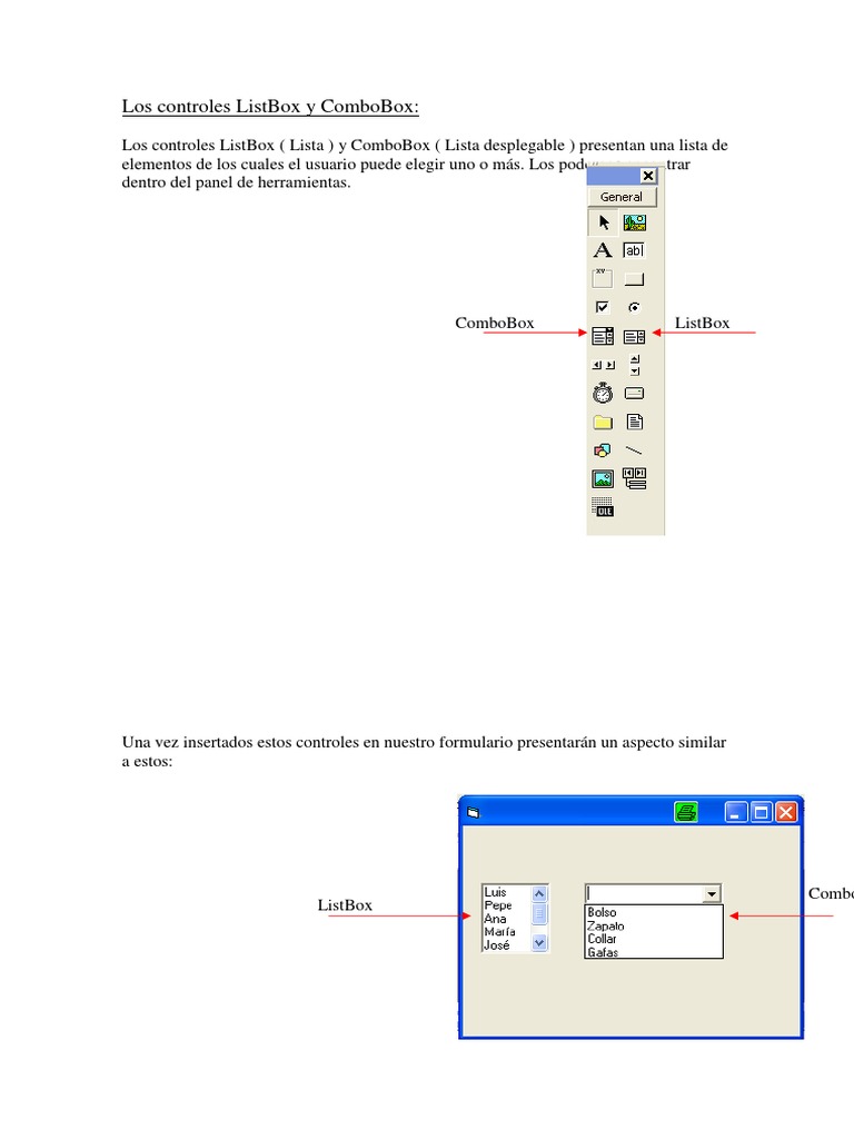 Los controles ListBox ( Lista ) y ComboBox ( Lista desplegable ) presentan una lista de