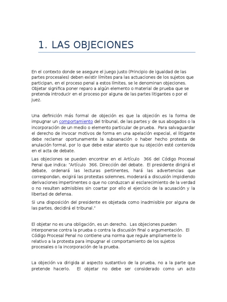 Las objeciones se pueden encontrar en el Artculo 366 del Cdigo Procesal