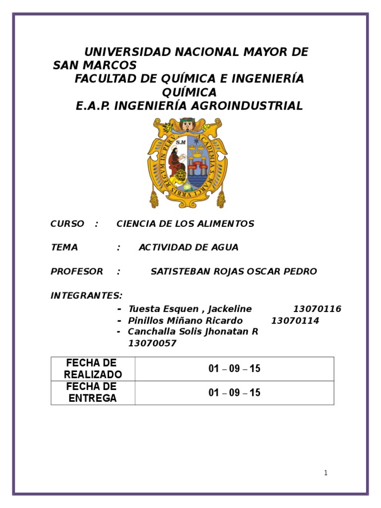 ACTIVIDAD DE AGUA