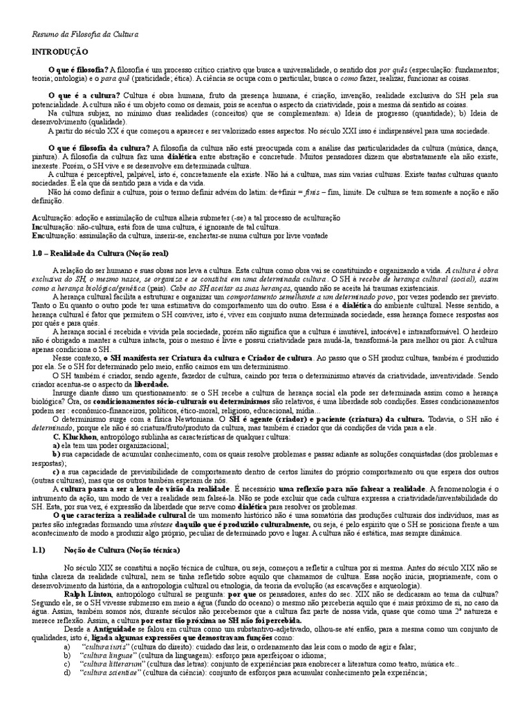 O que filosofia da cultura? A filosofia da cultura no est preocupada com a anlise das particularidades da cultura (msica, dana,