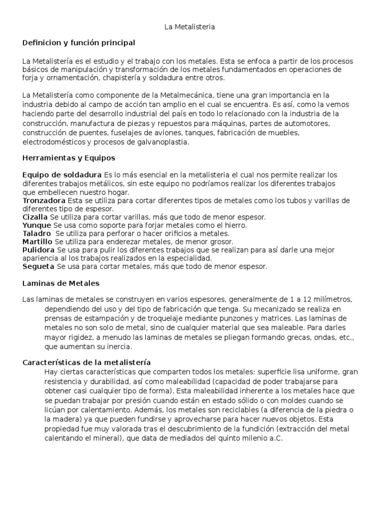 bsicos de manipulacin y transformacin de los metales fundamentados en operaciones de