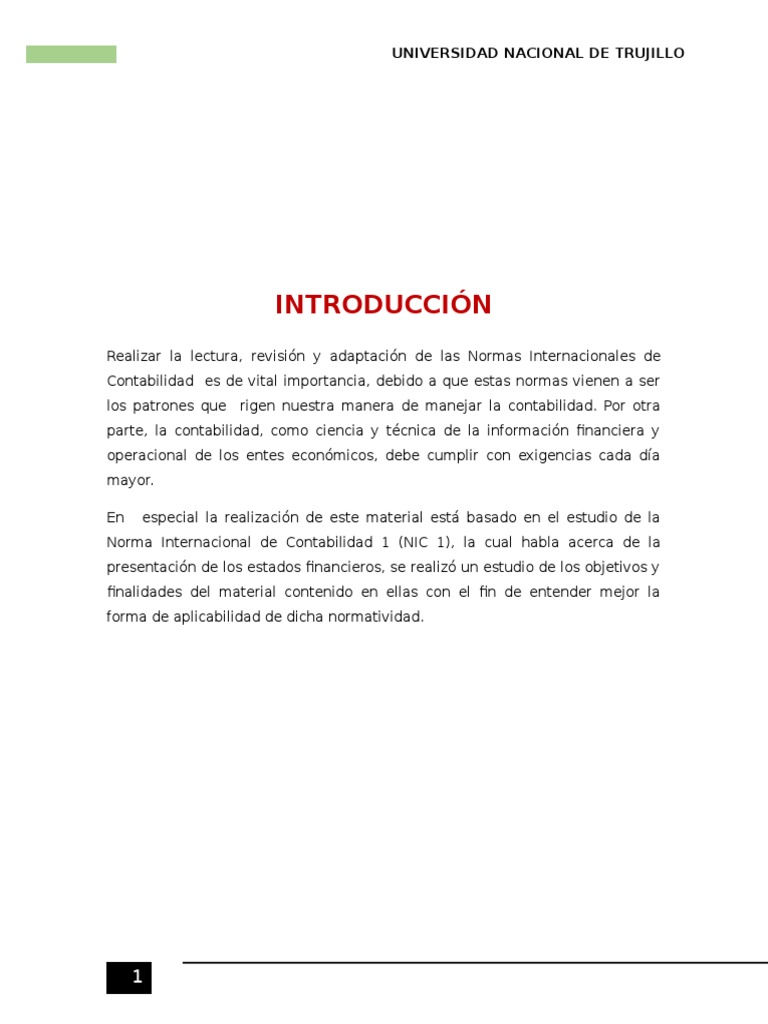 Norma Internacional de Contabilidad 1 (NIC 1), la cual habla acerca de la