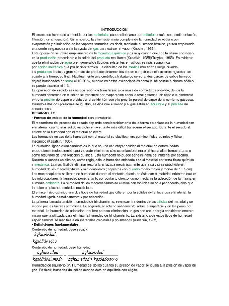 La operacin de secado es una operacin de transferencia de masa de contacto gas- slido, donde la