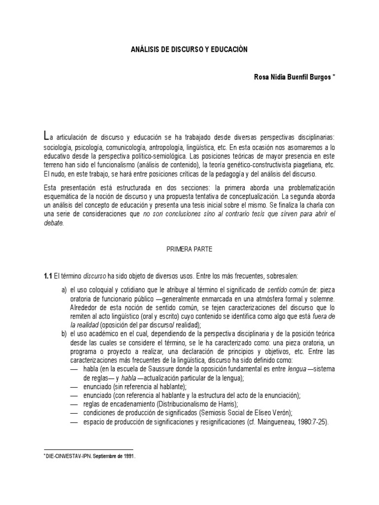 Centrndonos en lo educativo como el objeto del anlisis de discurso, puede observarse que: