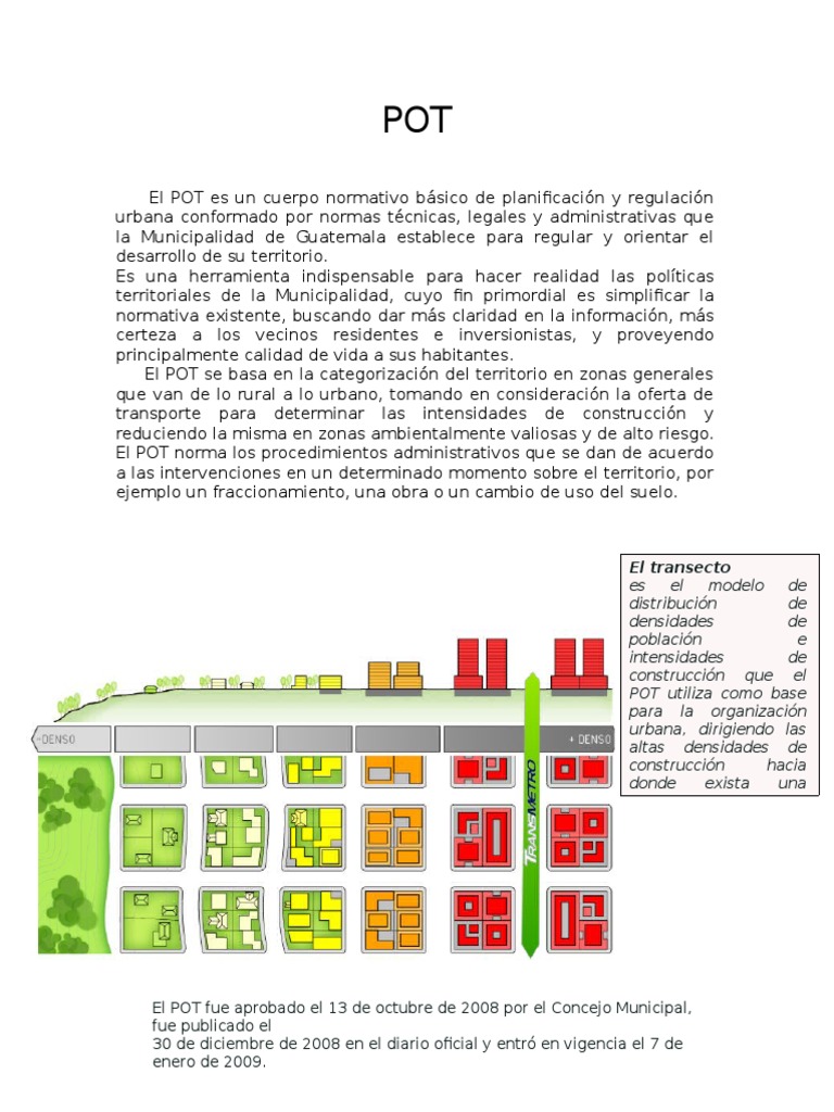 El POT categoriza el territorio del Municipio de Guatemala en 6 zonas