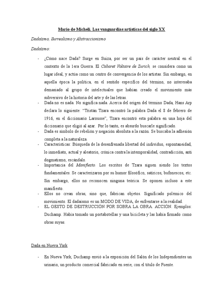 (Para la prueba, ten bien claro las diferencias entre el dadasmo y el surrealismo)