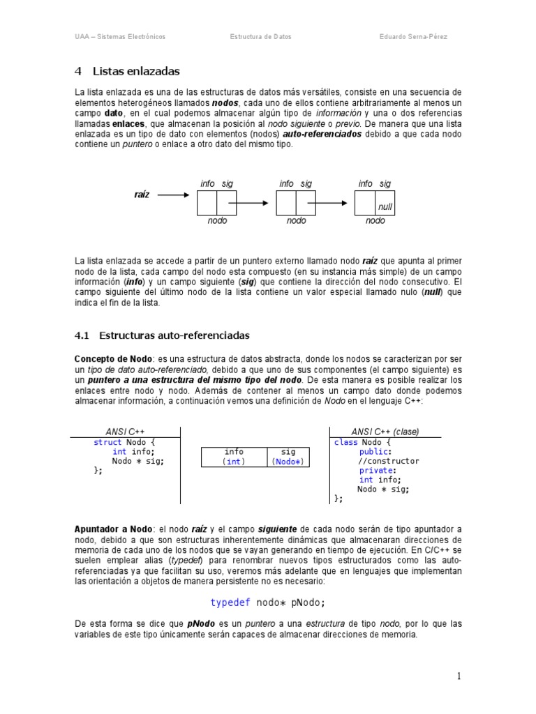 enlazada es un tipo de dato con elementos (nodos) auto-referenciados debido a que cada nodo